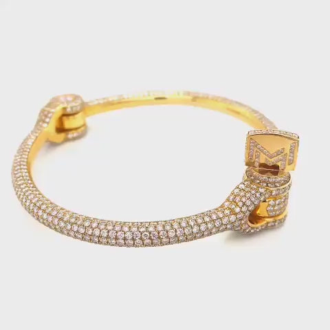 The TMMC magnificent signature interlock is the first hand-twist lock mechanism with a screw-in lock clasp. This interlock piece symbolizes empowerment and open-mindedness in controlling one’s life. This statement bracelet has 360-degree VS diamond coverage throughout. The official company logo is ENGRAVED on both sides of the lock tip for authenticity.